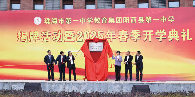 2025年2月17日,珠海市第一中学教育集团阳西县第一中学揭牌。珠海一中党委书记张六安介绍:“集团共选派13名行政管理人员和骨干教师团队,入驻阳西一中负责托管帮扶工作,旨在帮助该校实现教育质量、管理水平、教师素质能力、学生综合素质四个方面明显提升,打造广东省县中帮扶样板。”