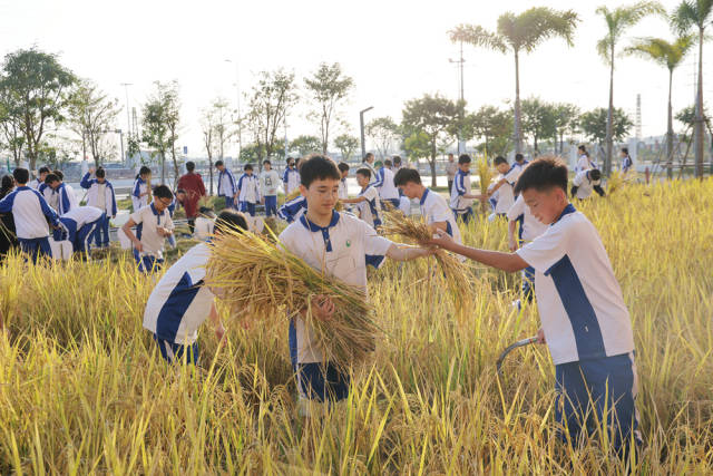 又到了学校的劳动实践基地,阳江市阳东区实验学校的共育小分队轻快地走进田野,熟练地给番薯培土、除草、施肥。“看着井然有序、没有一点杂草的种植基地,我的心里甜滋滋的,有满满的成就感。”劳动过后,小分队成员黄泽锴高兴地说。