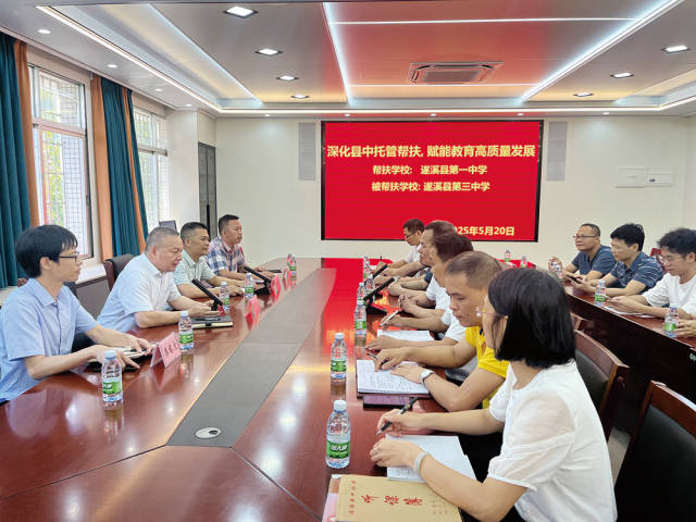 作为省级示范性高中,遂溪县第一中学(以下简称“遂溪一中”)与遂溪县第三中学(以下简称“遂溪三中”)、杨柑中学分别建立了为期三年的结对帮扶关系,通过支教帮扶、开发“定制化”培训讲座及送教课程等方式,推动教学资源共享,促进师资队伍成长,提升整体育人质量。